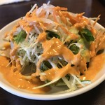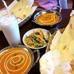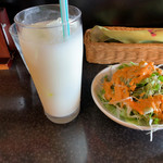 ザヤカリ - 先に提供されるラッシーとサラダ。